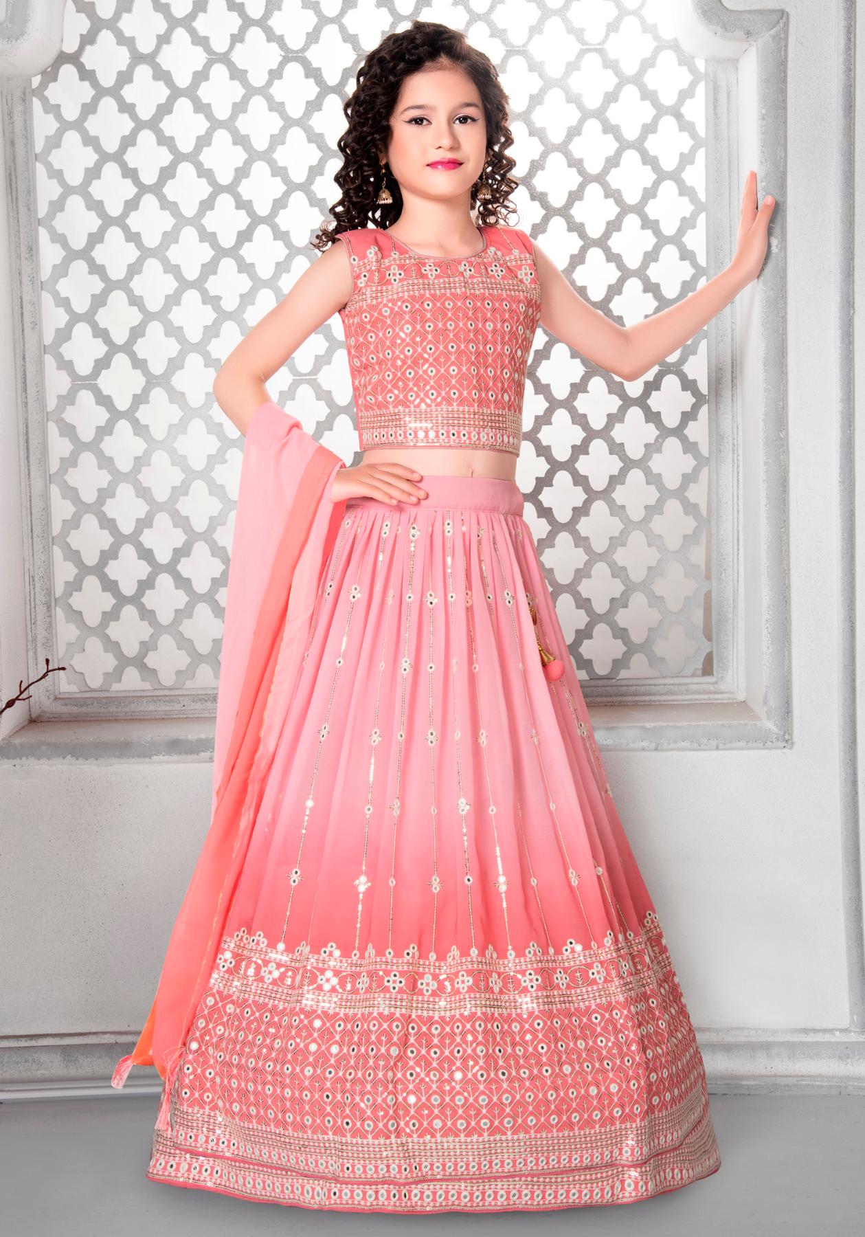 Buy Bewitching Georgette Light Salmon Kids Lehenga Choli online.