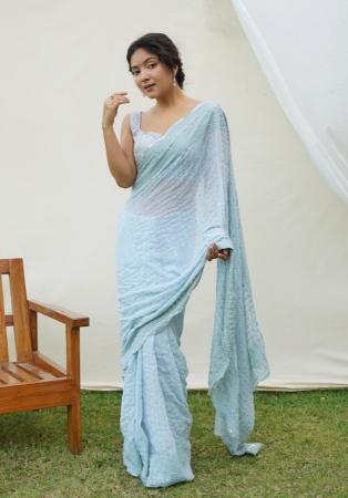 Buy Bewitching Georgette Light Steel Blue Saree online.