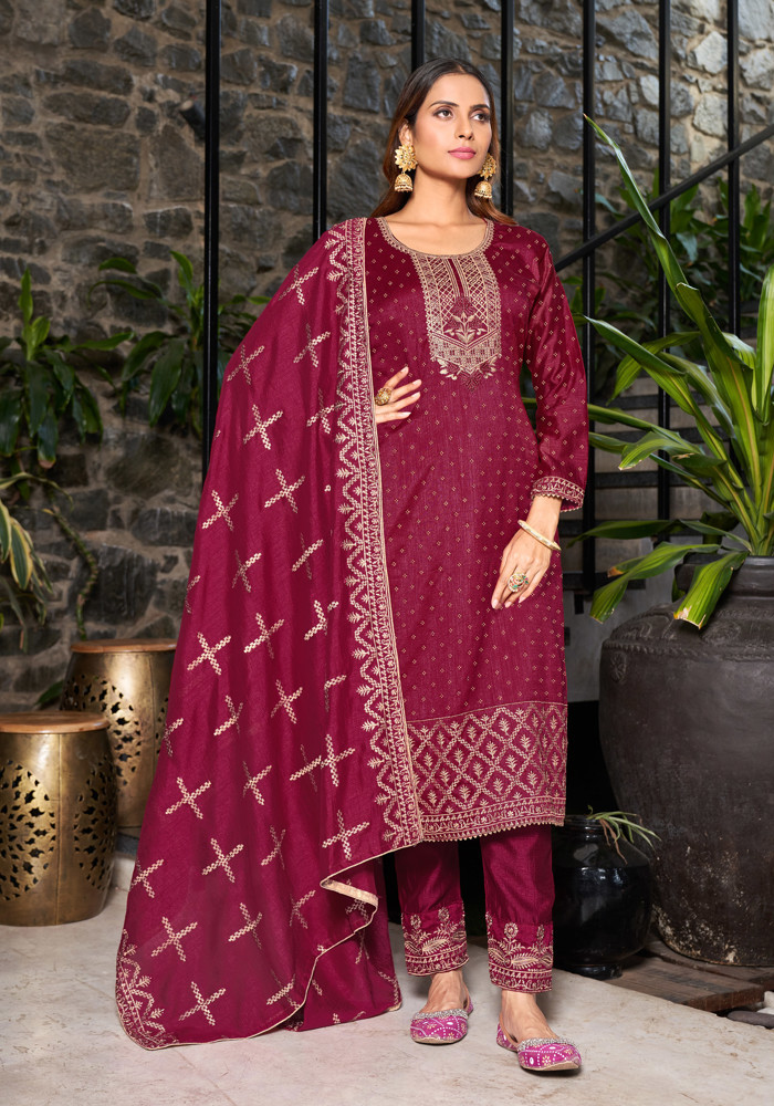 Buy Bewitching Georgette Maroon Straight Cut Salwar Kameez online.