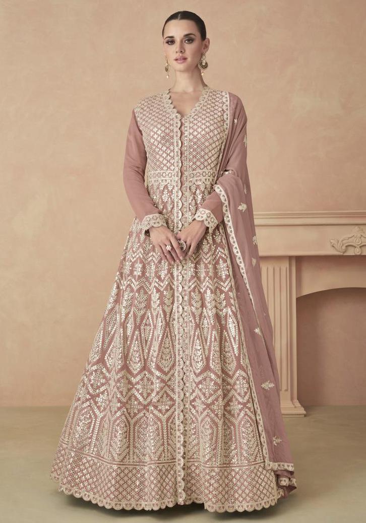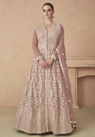 Buy Bewitching Georgette Rosy Brown Anarkali Salwar Kameez online.