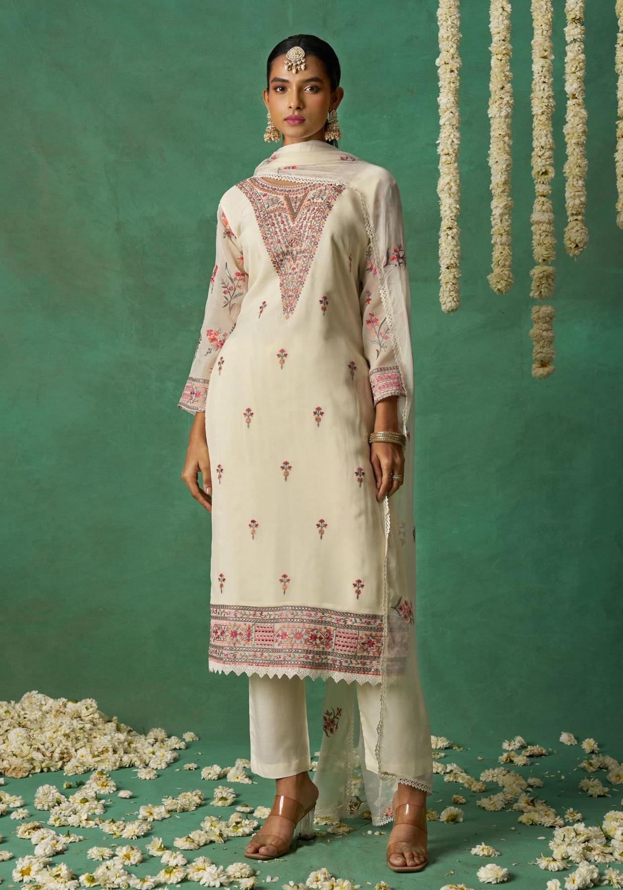 Normally size is measured between the underarm stitching lines from the stressed kameez.