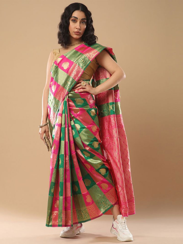 In Pre-stitched saree you will get the saree with stitched plates, belt on the waist and adjustable hooks. So you can wear the saree like a skirt
