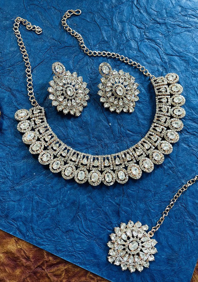Details: 1 Necklace Set, 2 Earrings, 1 Mang Tikka.