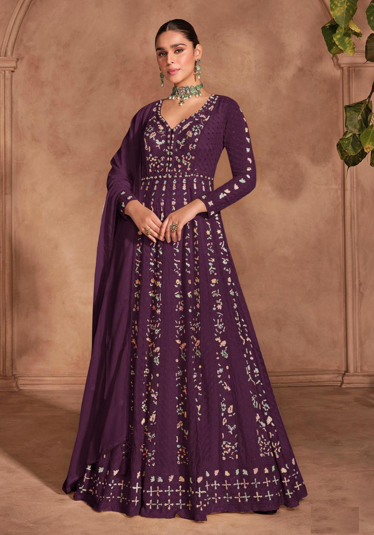 Charming Chiffon Dark Magenta Anarkali Salwar Kameez