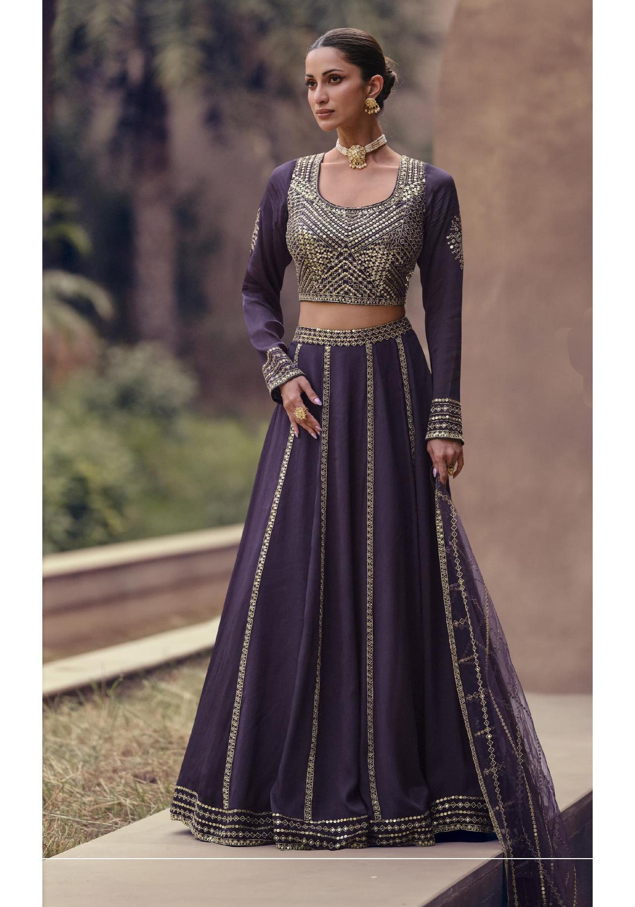 Buy Charming Chiffon & Silk Purple Lehenga Choli online.