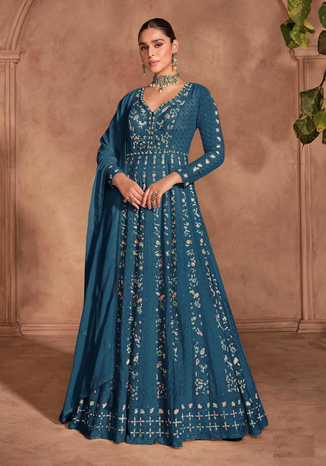 Charming Chiffon Teal Anarkali Salwar Kameez