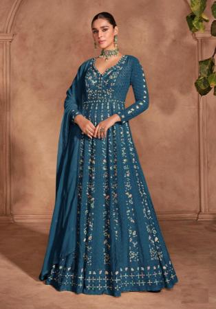 Buy Charming Chiffon Teal Anarkali Salwar Kameez online.