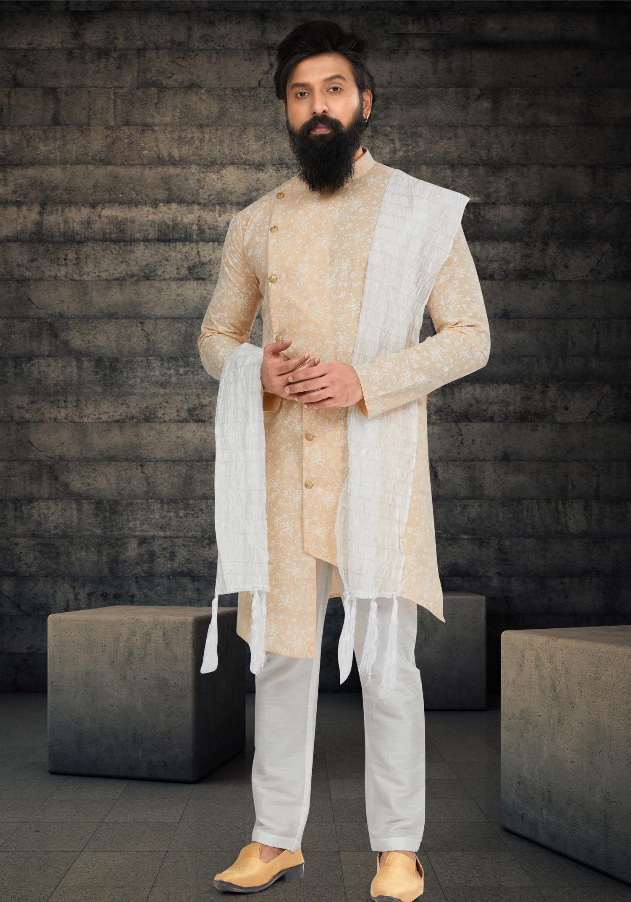 Picture of Charming Cotton & Silk Tan Indo Western Picture of Charming Cotton & Silk Tan Indo Western