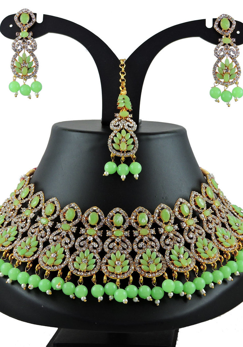 Details: 1 Necklace Set, 2 Earrings, 1 Mang Tikka.