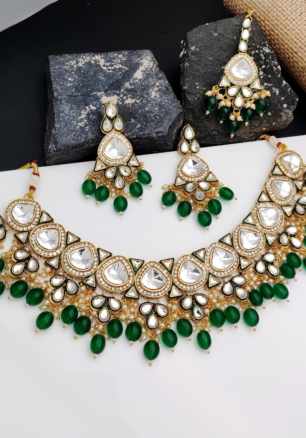 Buy Charming Forest Green Necklace Set online.