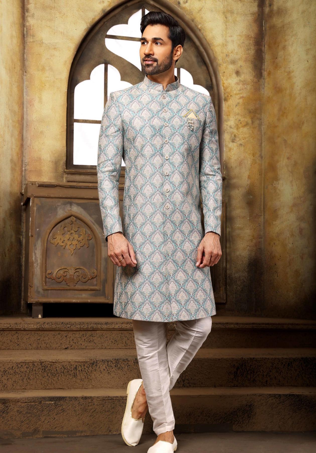 Buy Charming Georgette & Satin Off White Indo Western online.