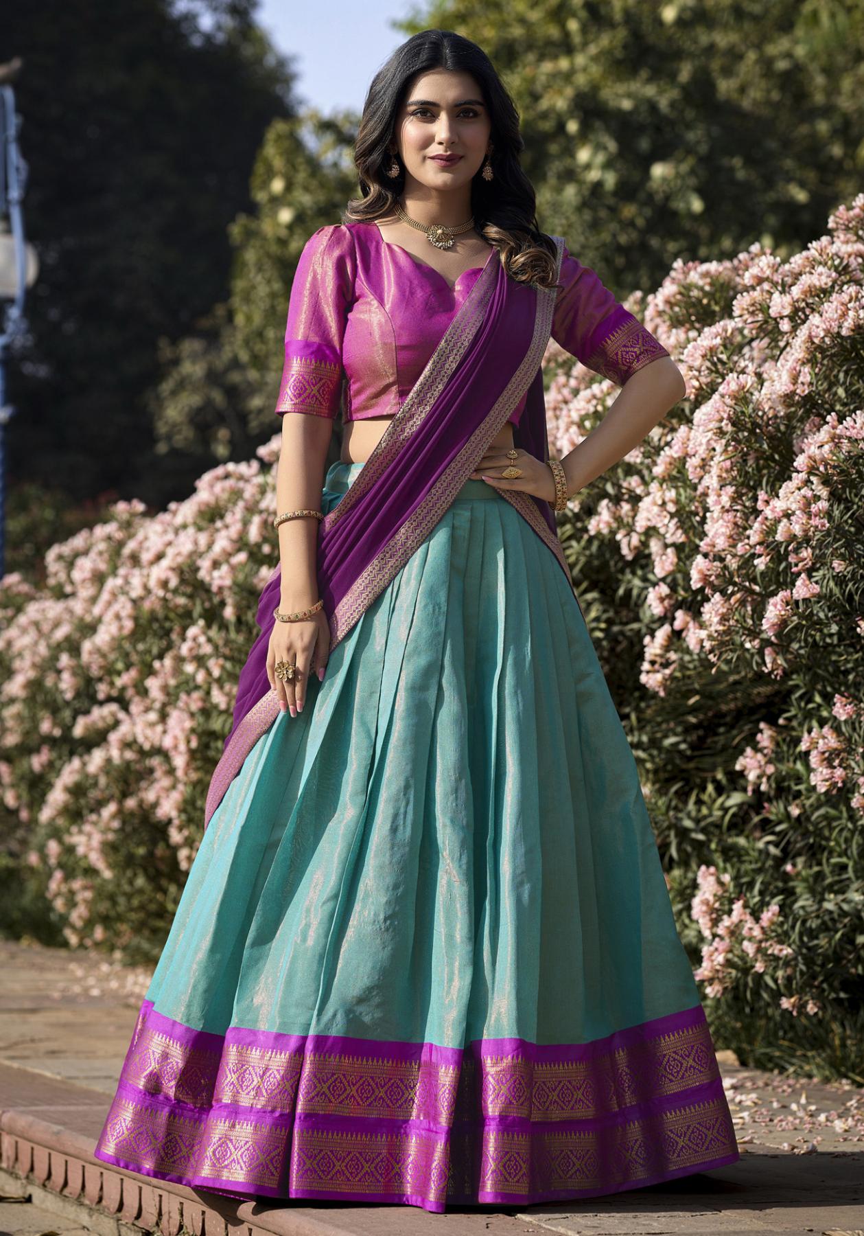 Lehenga Fabric: Kanchipuram With Zari Weaving [Stitched Upto 42", Length: 41"].