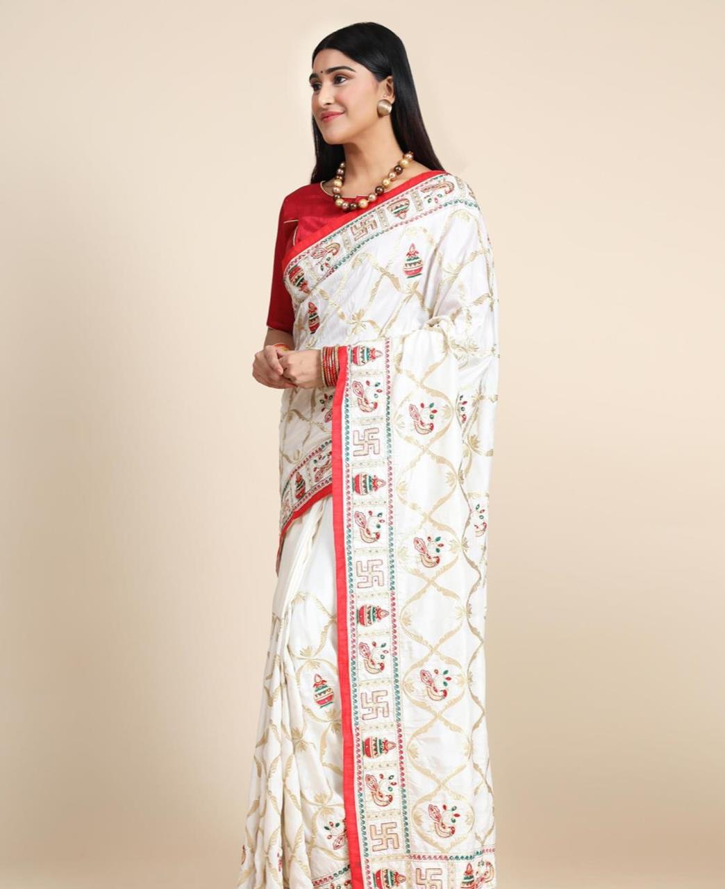 Beautifully Designed with Embeoidery & Diamond Work, Piping Lace Border With Latkan Work.