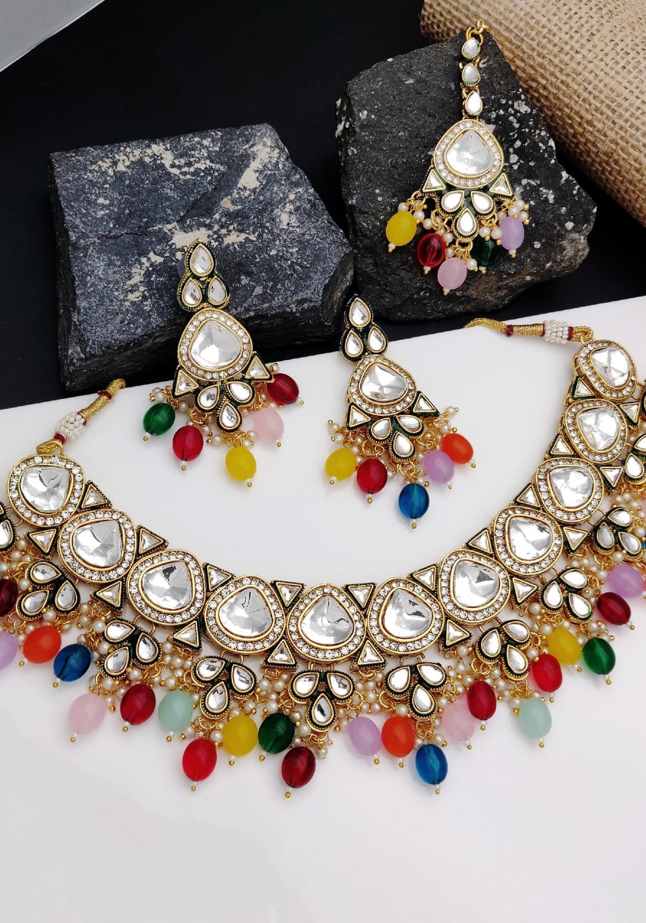 Details: 1 Chokar, 1 Pai Earrings, 1 Maangtika.