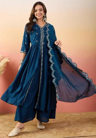Buy Charming Silk Navy Blue Readymade Salwar Kameez online.
