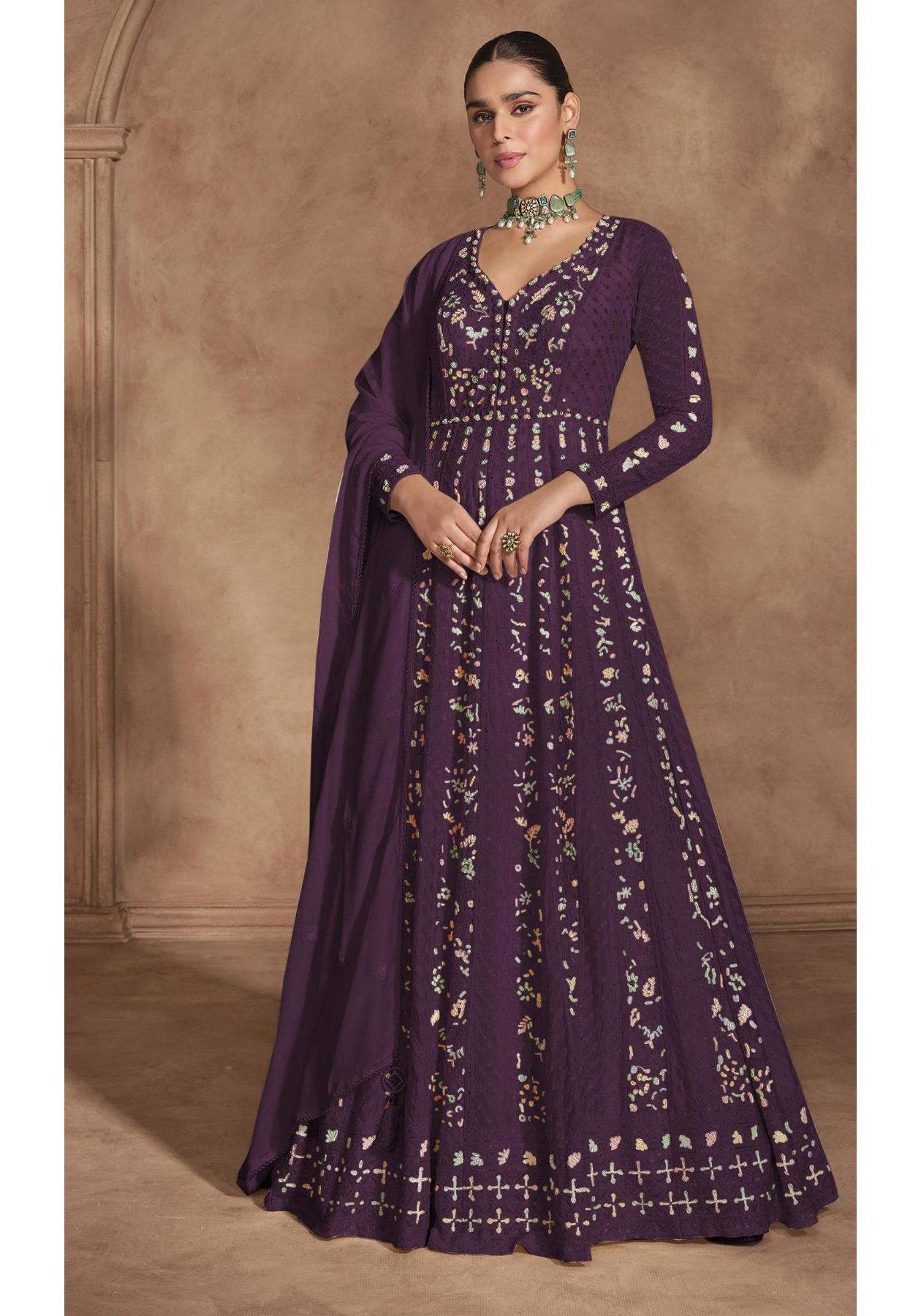 Buy Chiffon Dark Olive Green Anarkali Salwar Kameez online.