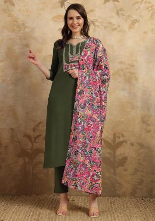 Buy Chiffon Dark Olive Green Readymade Salwar Kameez online.