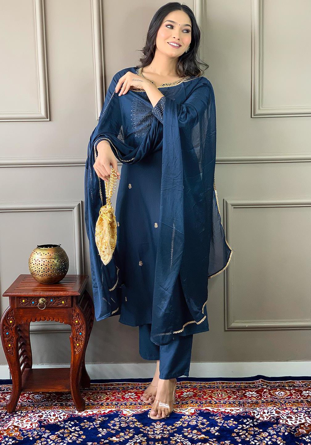 Buy Chiffon Dark Slate Blue Readymade Salwar Kameez online.