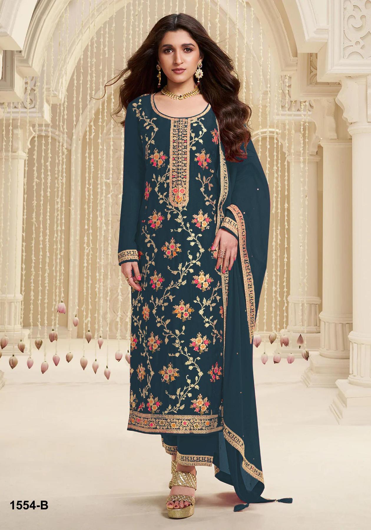 Buy Chiffon Dark Slate Grey Straight Cut Salwar Kameez online.