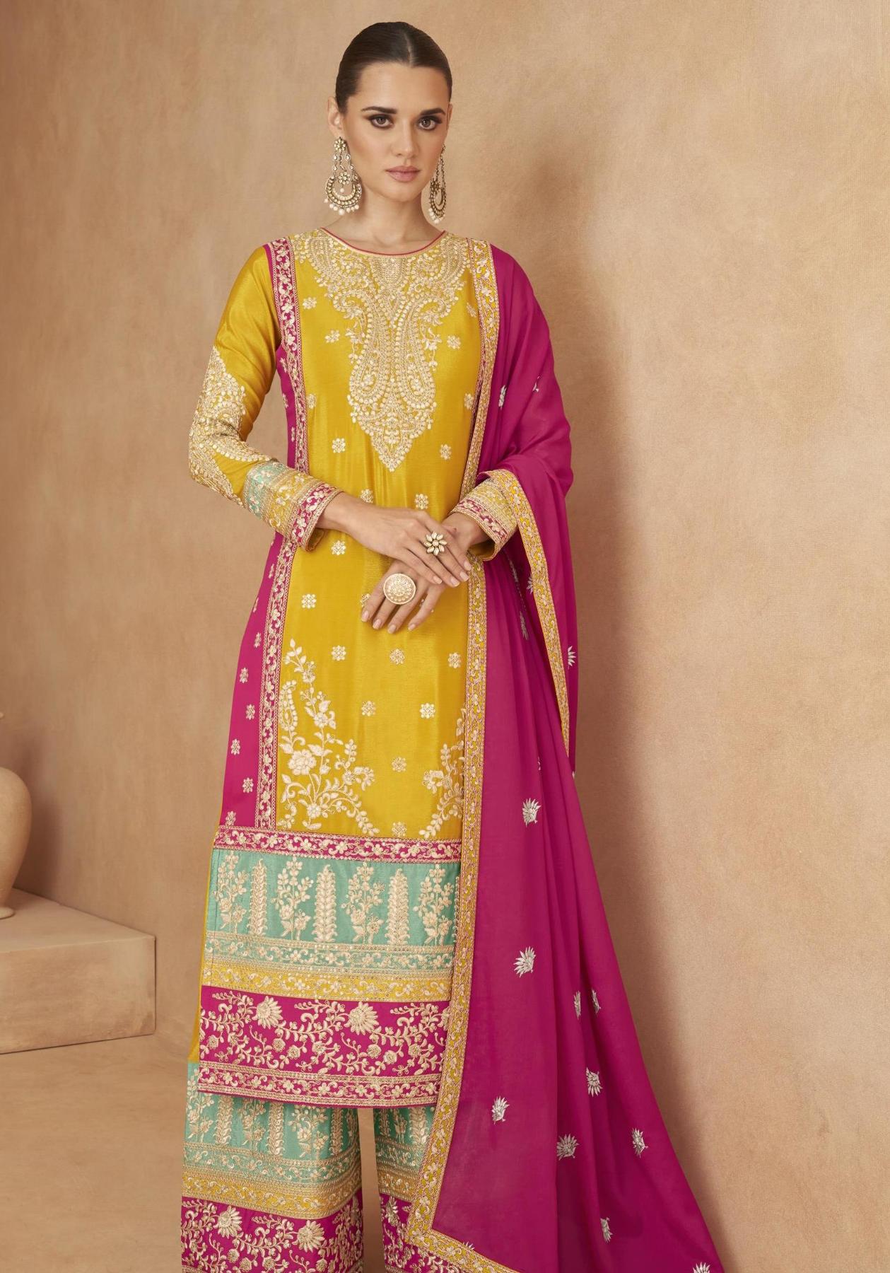 Chiffon Golden Rod Straight Cut Salwar Kameez