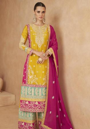 Buy Chiffon Golden Rod Straight Cut Salwar Kameez online.