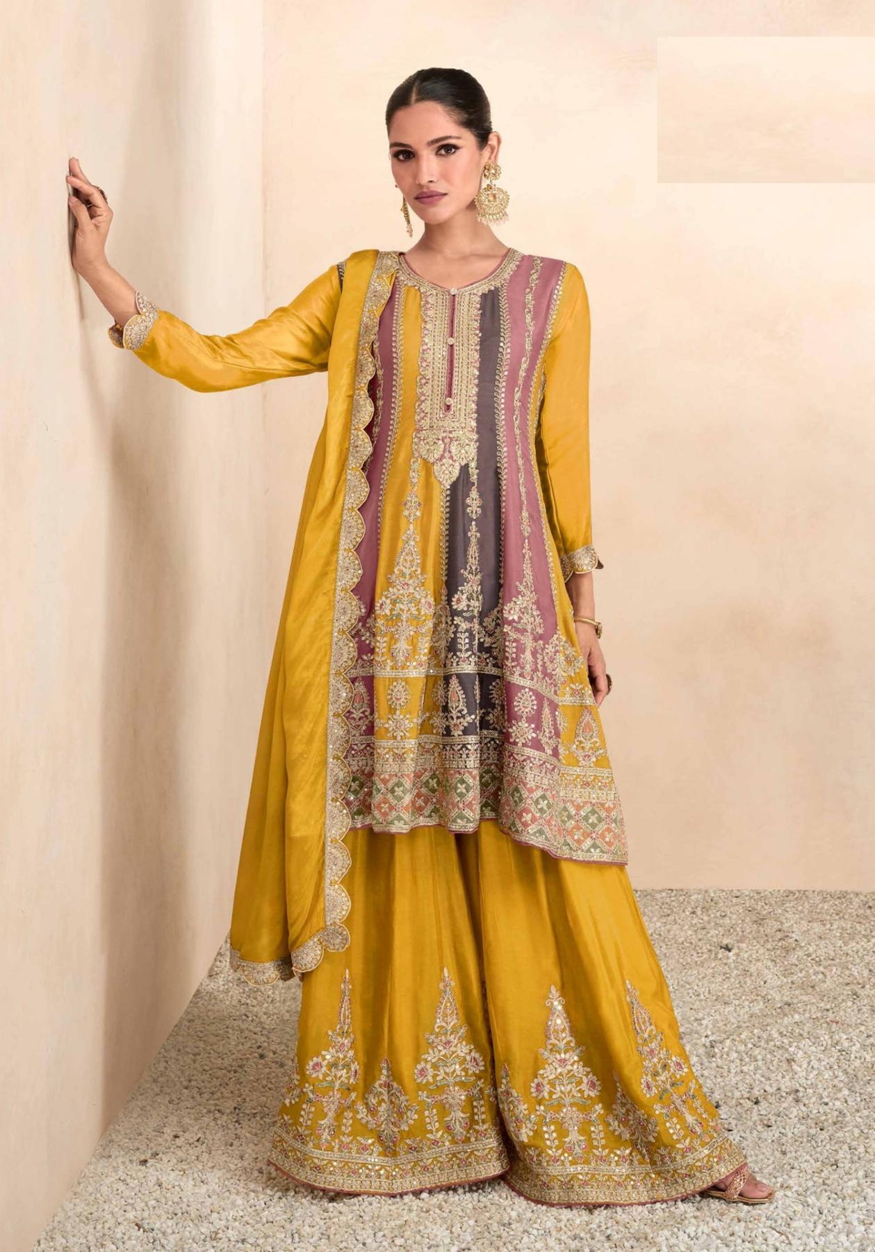 Chiffon Golden Rod Straight Cut Salwar Kameez