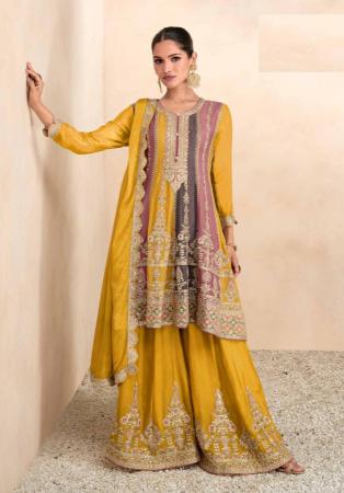 Buy Chiffon Golden Rod Straight Cut Salwar Kameez online.