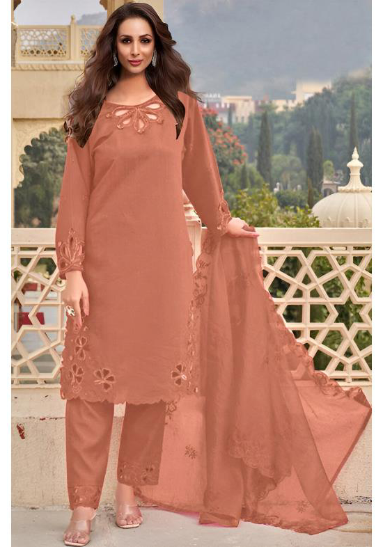 Chiffon Indian Red Straight Cut Salwar Kameez