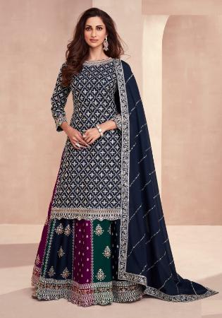Normally size is measured between the underarm stitching lines from the stressed kameez.