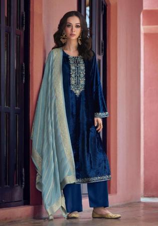 Buy Chiffon Midnight Blue Straight Cut Salwar Kameez online.