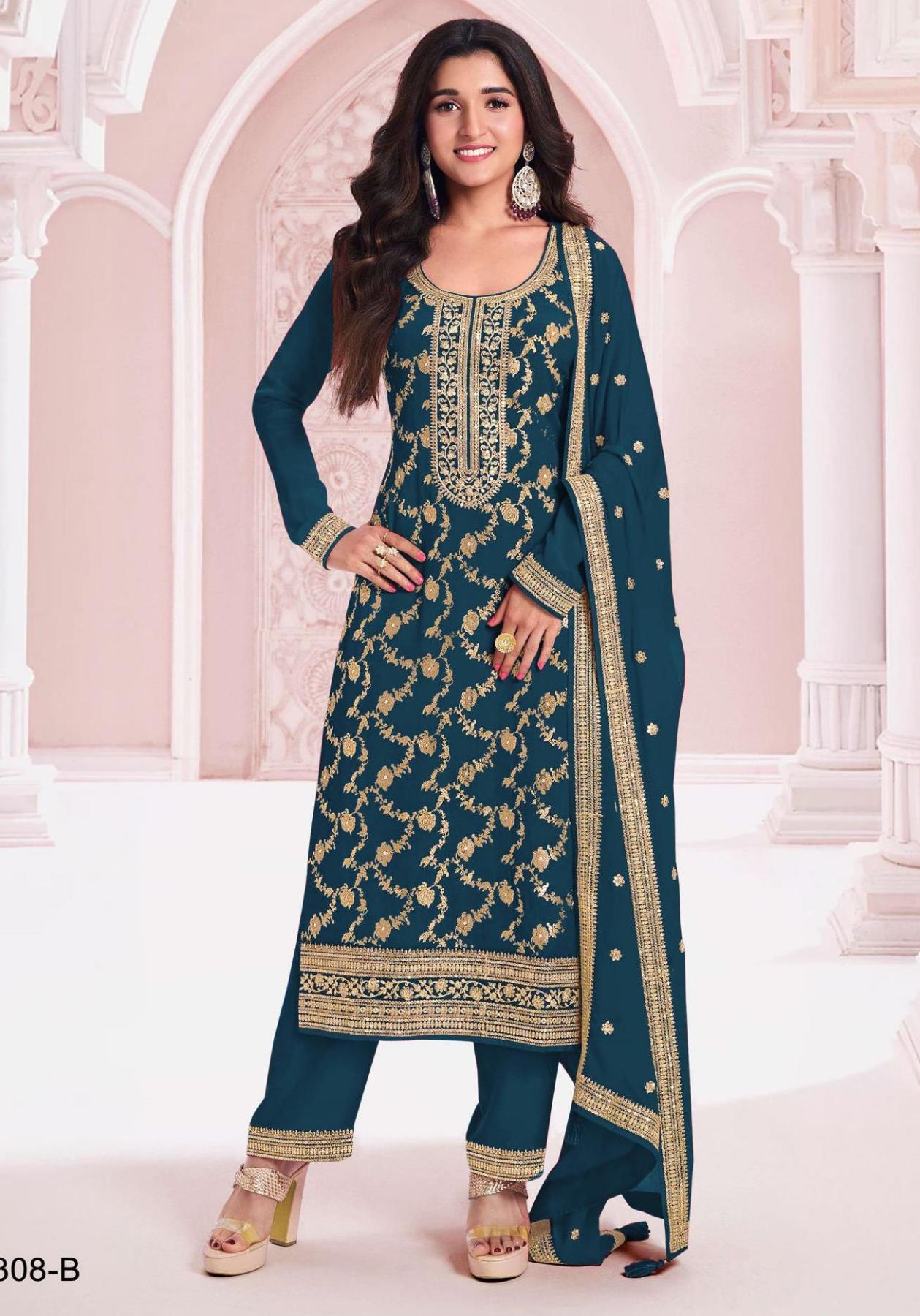 Buy Chiffon Midnight Blue Straight Cut Salwar Kameez online.