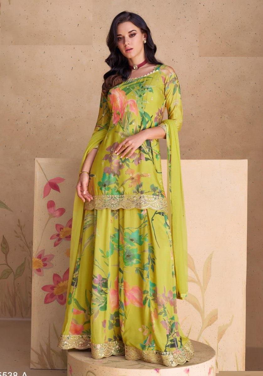 Normally size is measured between the underarm stitching lines from the stressed kameez.