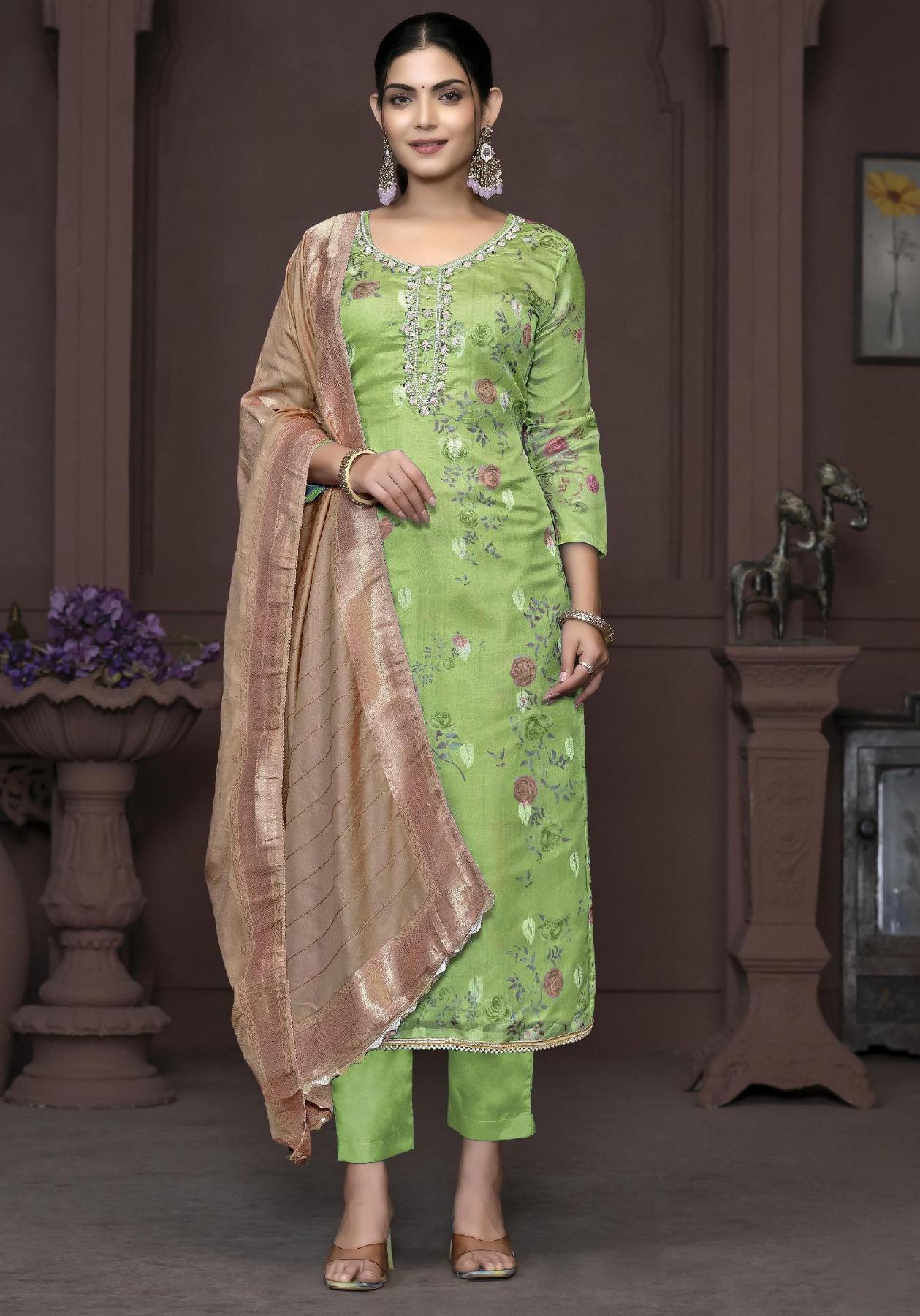 Buy Chiffon & Organza Dark Sea Green Straight Cut Salwar Kameez online.