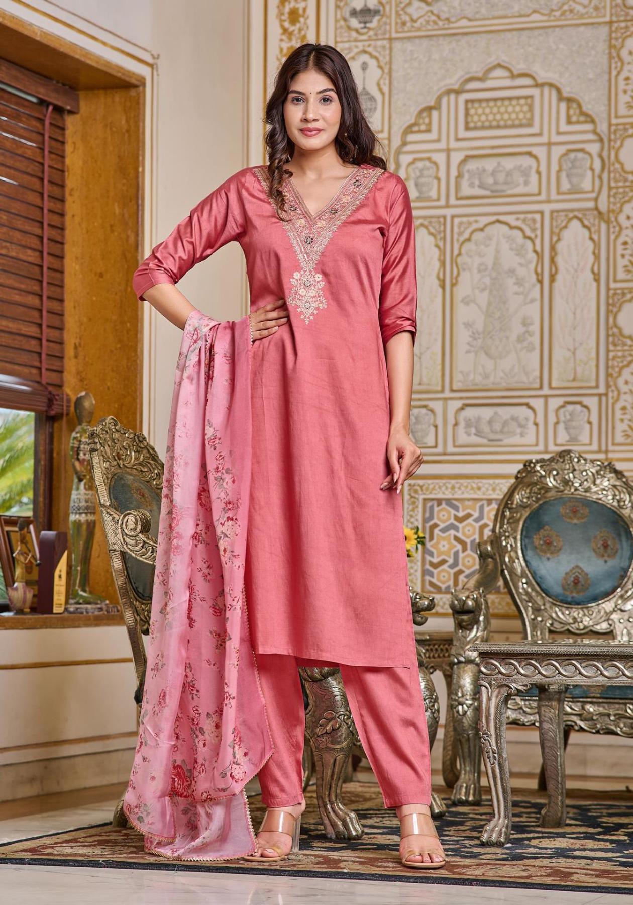Buy Chiffon Pale Violet Red Readymade Salwar Kameez online.