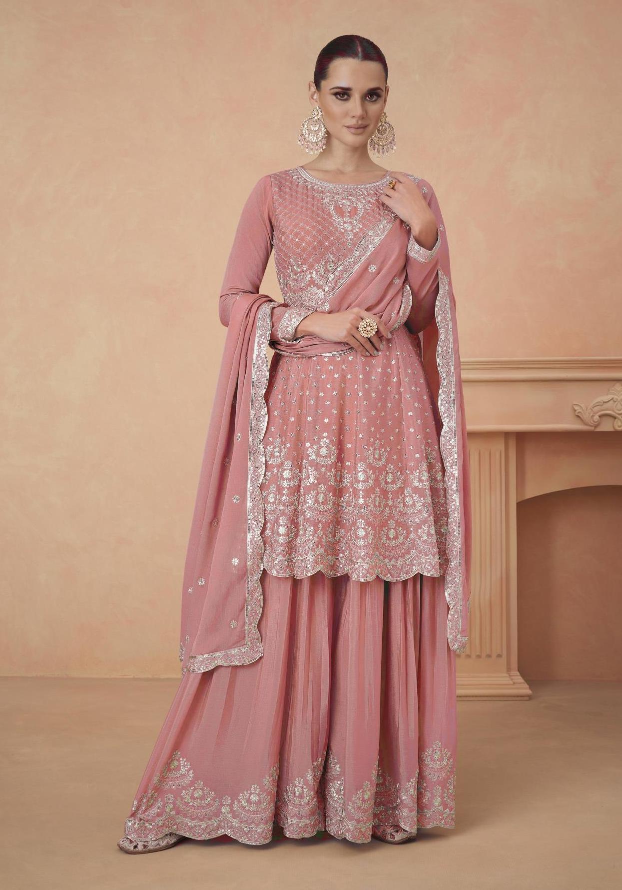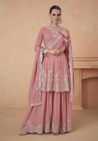 Buy Chiffon Pale Violet Red Straight Cut Salwar Kameez online.