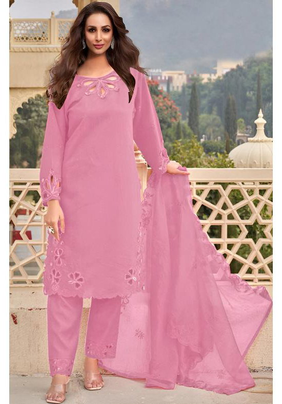 Buy Chiffon Pale Violet Red Straight Cut Salwar Kameez online.