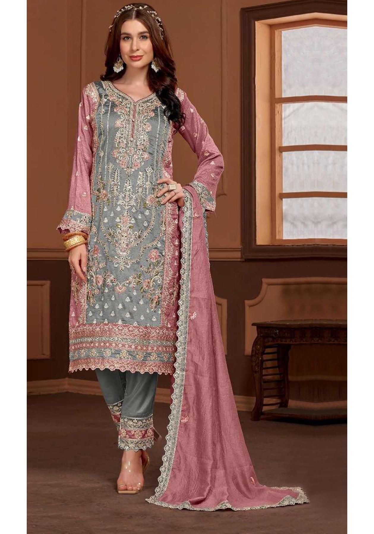 Buy Chiffon Rosy Brown Straight Cut Salwar Kameez online.