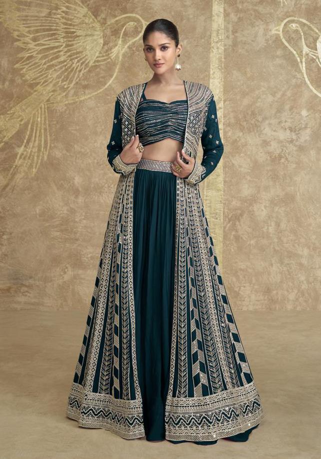 Buy Chiffon & Silk Dark Green Straight Cut Salwar Kameez online.