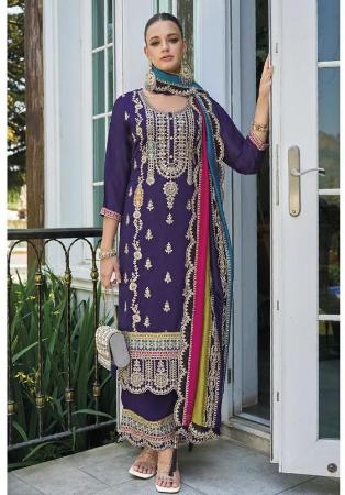 Buy Chiffon & Silk Dark Slate Blue Straight Cut Salwar Kameez online.