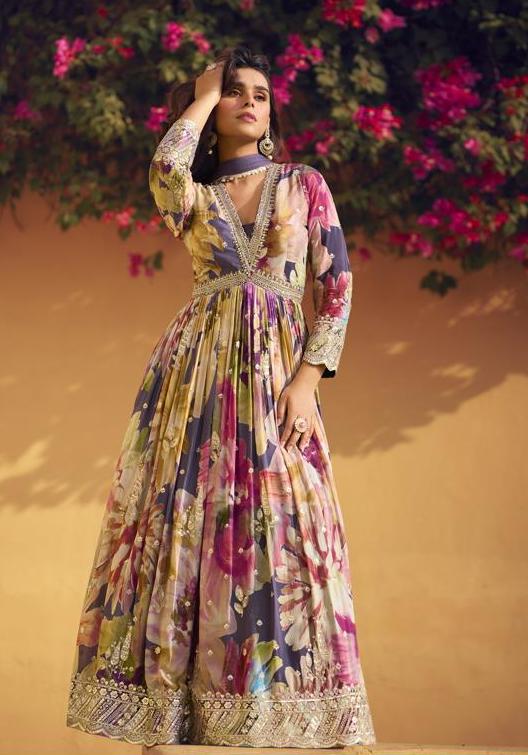 Normally size is measured between the underarm stitching lines from the stressed kameez.