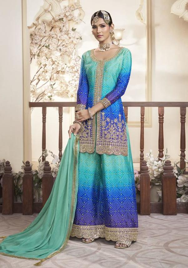 Buy Chiffon & Silk Steel Blue Straight Cut Salwar Kameez online.