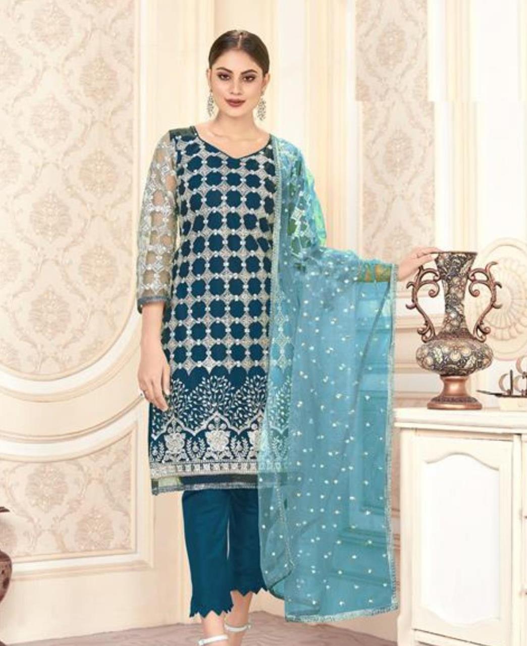 Normally size is measured between the underarm stitching lines from the stressed kameez.