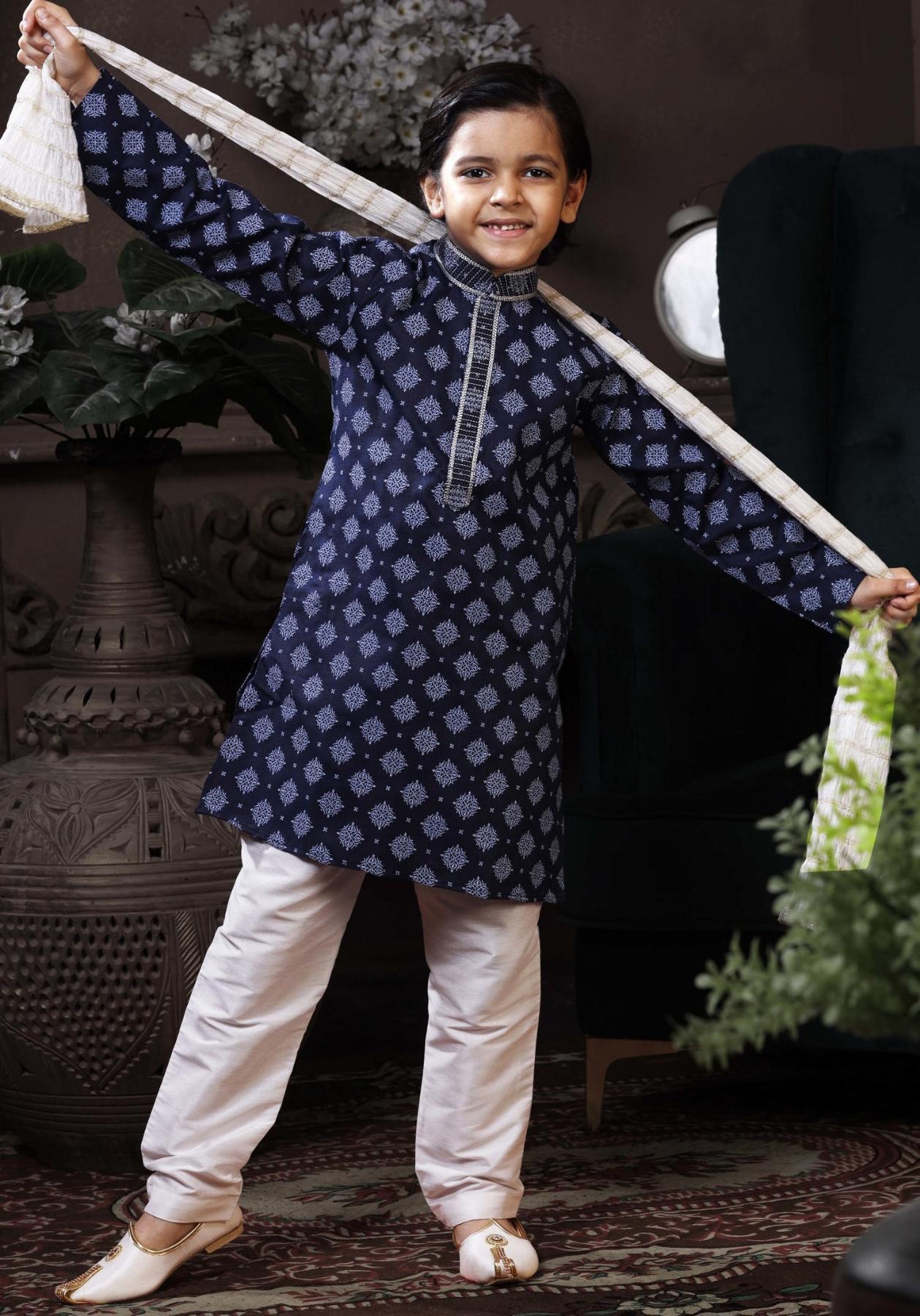 Buy Classy Cotton Navy Blue Kids Kurta Pyjama online.