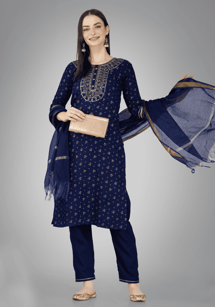 Classy Cotton Navy Blue Readymade Salwar Kameez