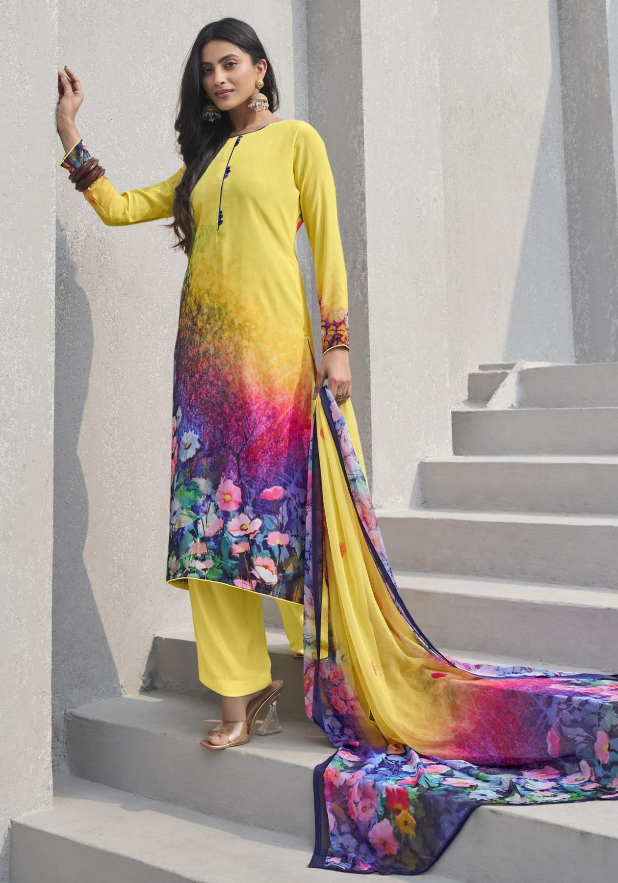 Normally size is measured between the underarm stitching lines from the stressed kameez.