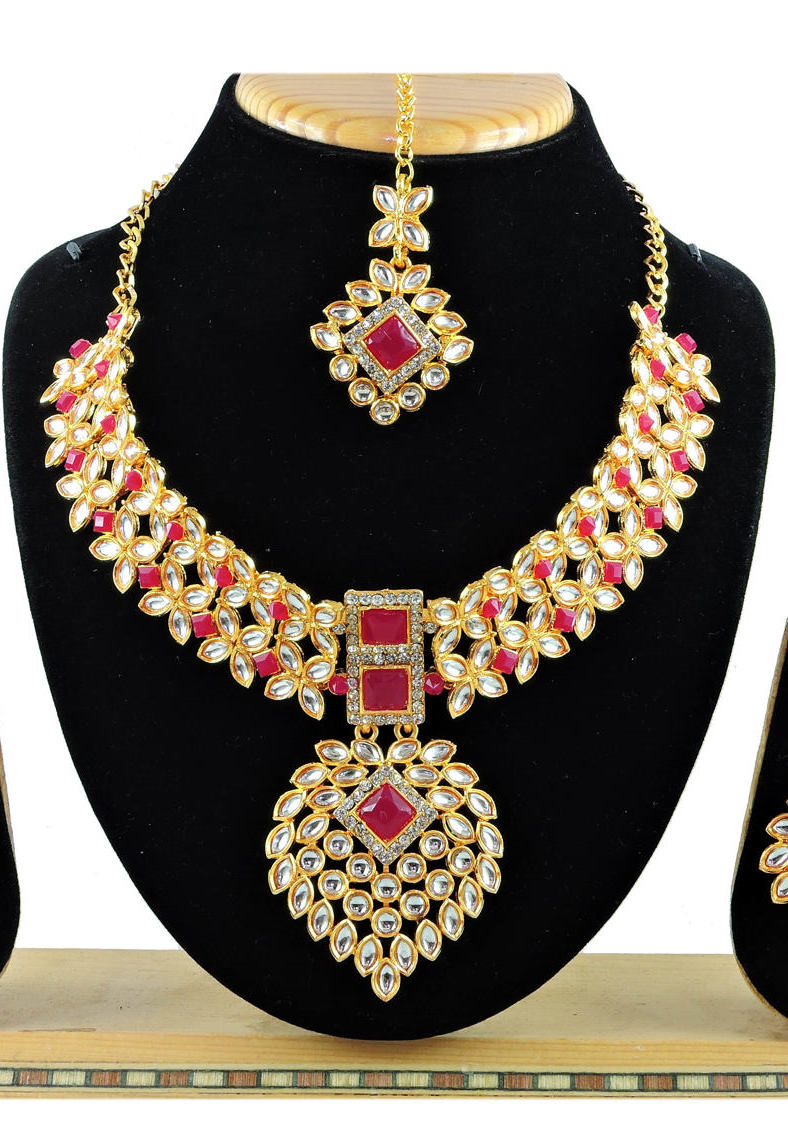 Details: 1 Necklace Set, 2 Earrings, 1 Mang Tikka.