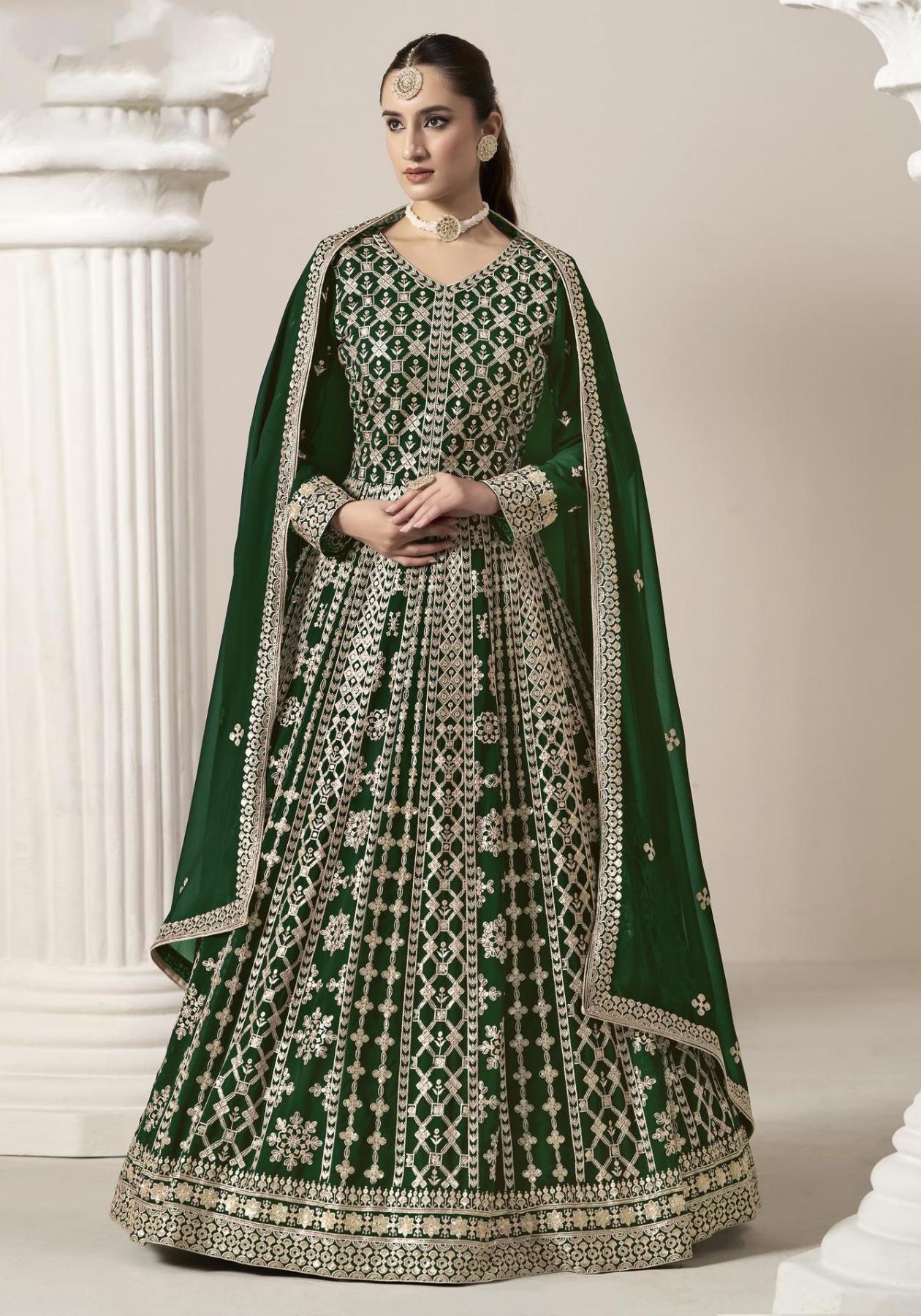 Buy Classy Georgette Dark Green Anarkali Salwar Kameez online.