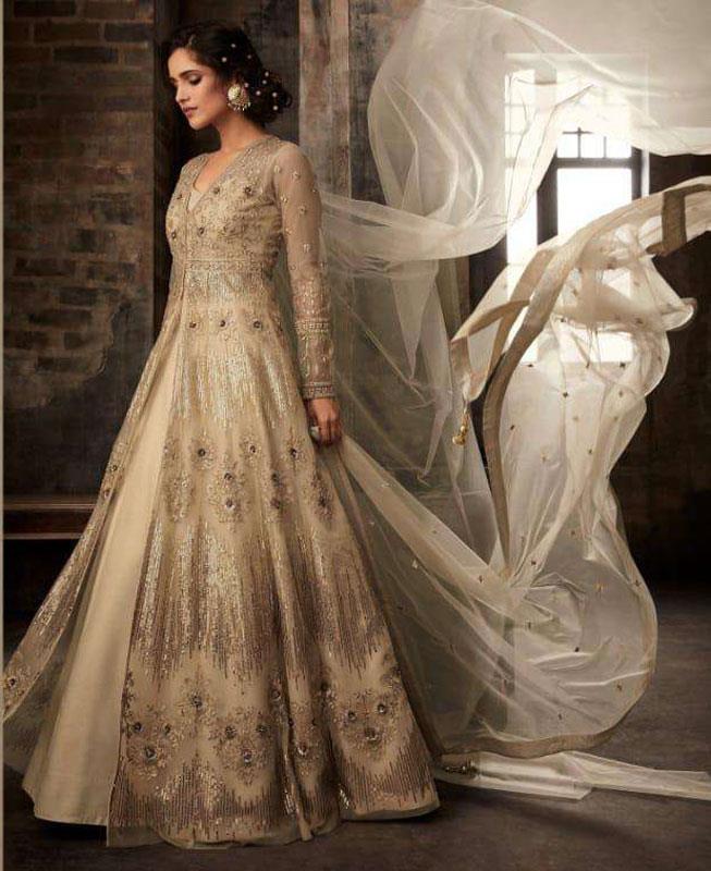 Normally size is measured between the underarm stitching lines from the stressed kameez.