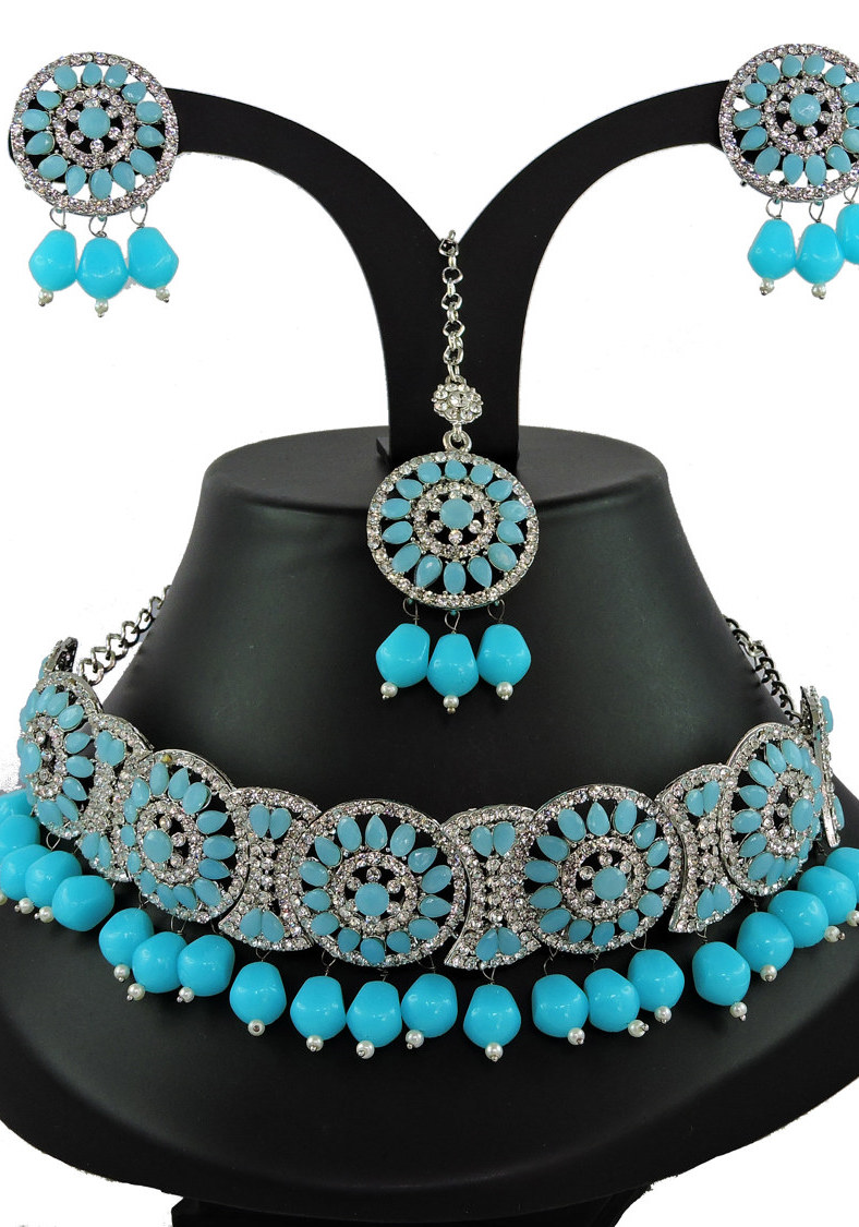 Details: 1 Necklace Set, 2 Earrings, 1 Mang Tikka.