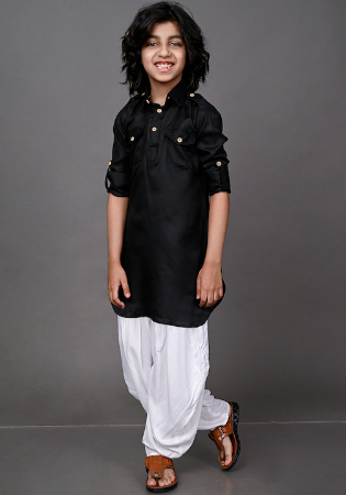 Buy Classy Silk Black Kids Kurta Pyjama online.